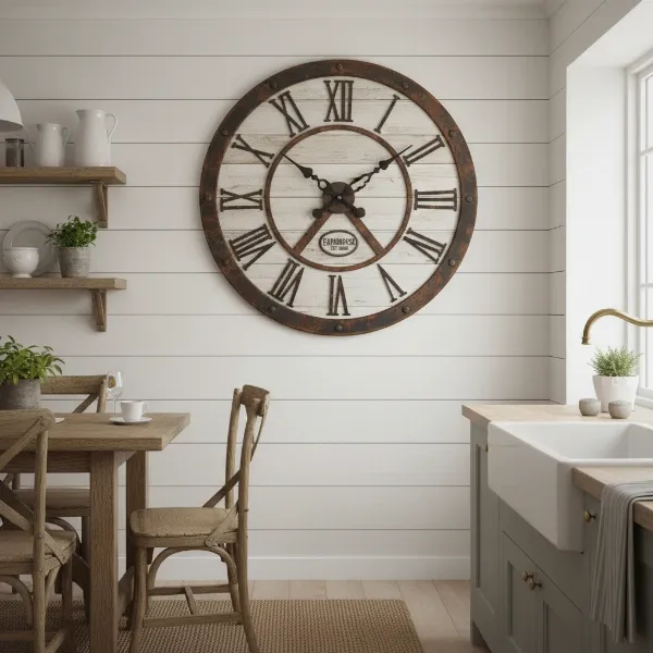 | [Generic Rustic Clock] | Farmhouse Wood Clock | Rustic charm, large numerals, distressed finish. | Can be noisy, design might clash with modern decor, typically wall-mount only. | ~$40 – $80 |